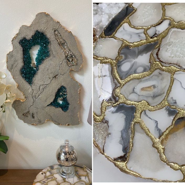 I’m an artist based out of Orlando, Florida who works with a variety of mediums but currently obsessed with resin and minerals.  I’m so excited to bring you these courses which reveal my tips and secrets on how to create my signature luxury agate board.   I’ve spent my time, energy, sleepless nights and resources to achieve this sought after technique.  Discover how to incorporate these techniques into your personal work.